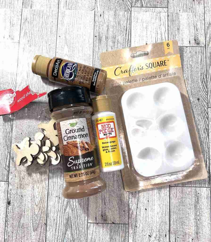 Now that the palette is covered, go ahead and work on the gingerbread men while it dries. Once it dries down you may notice some bare spots and these can easily be covered again with the Mod Podge and cinnamon.