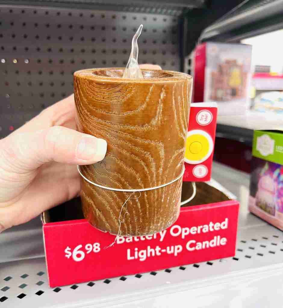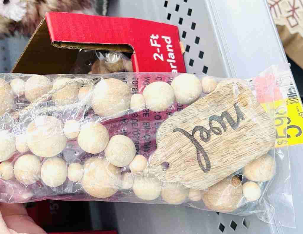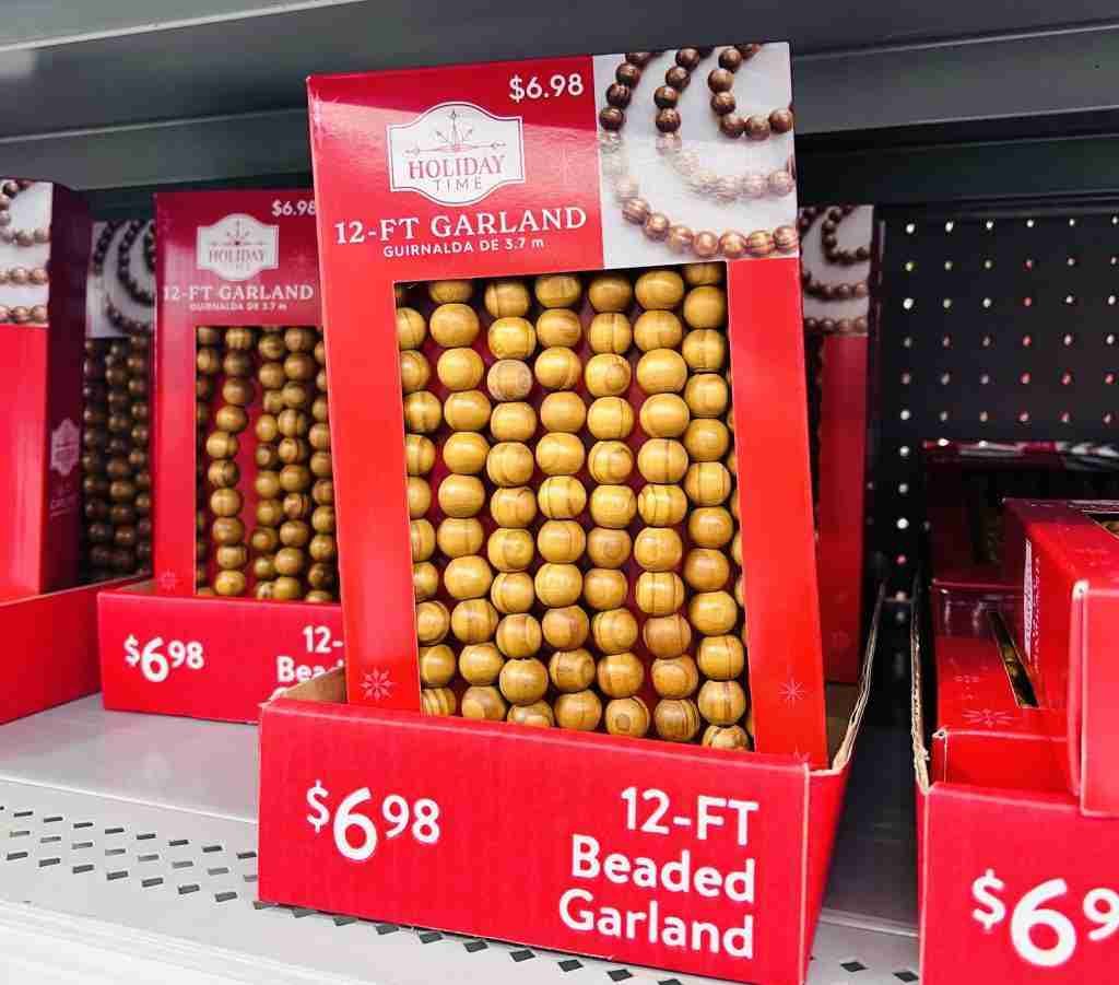 Wood bead garlands are always a great addition to home decor year round, along with these battery operated candles for about $3.50 each.