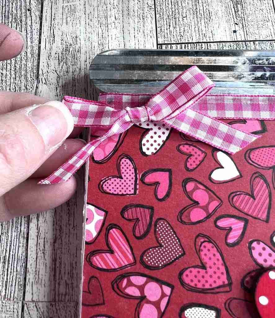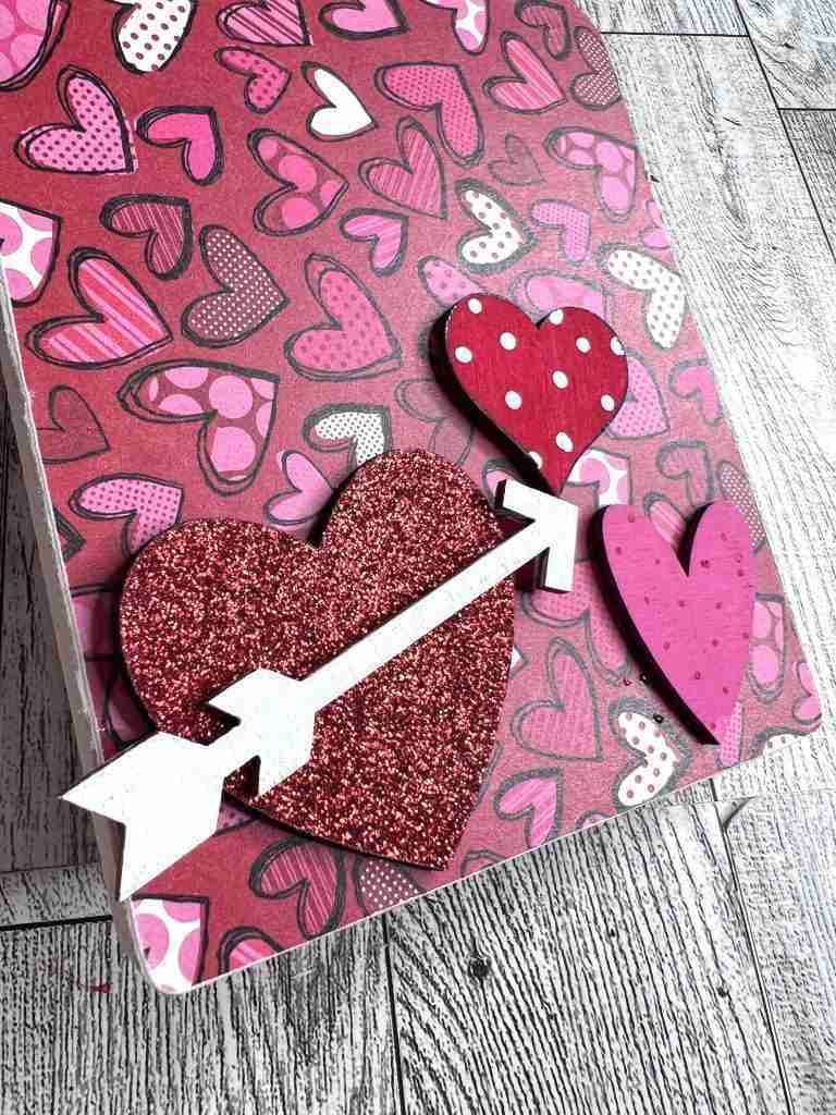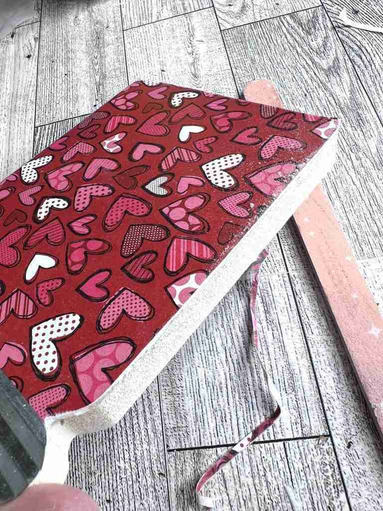 Now we can glue the hearts to the surface, add ribbon to the top and we’re all done!