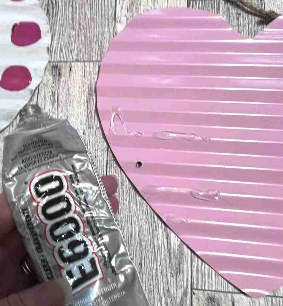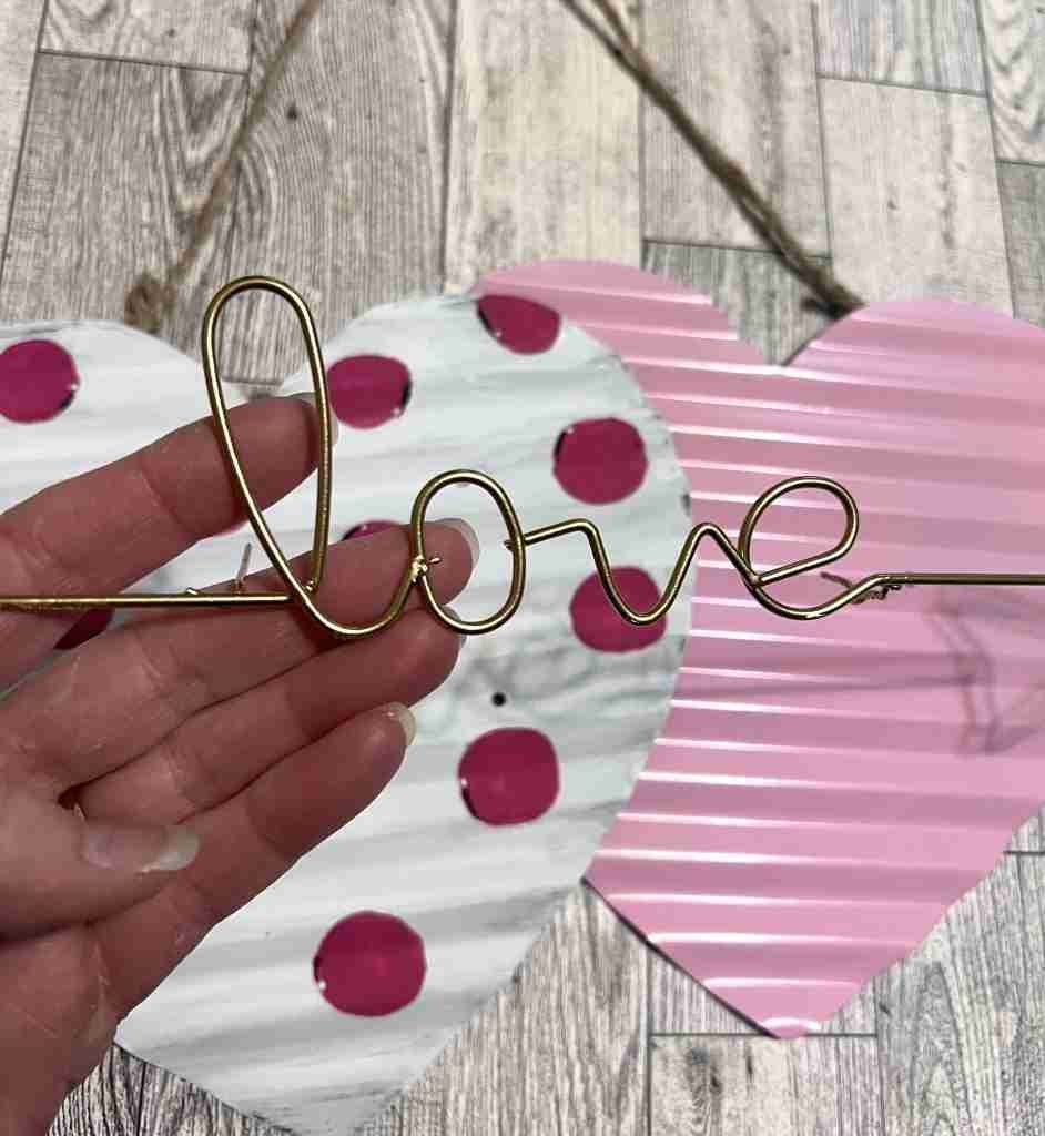 Next, I’ll paint the love arrow with my favorite gold spray paint to brighten it up. I’ll use E-6000 to help hold everything in place and then wire it back together.