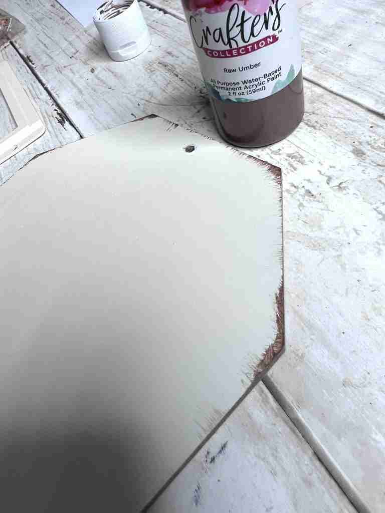 Next, I’ll add some Raw Umber acrylic paint all the way around to the edges.