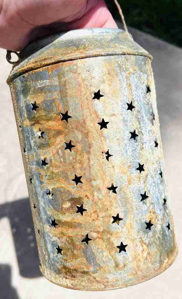 Don’t you just love a great thrift find?!? I thought this one would be perfect for some backyard decor, and for .99 cents it was a steal! Let’s get started on this thrifted Americana lantern with an easy rust technique.