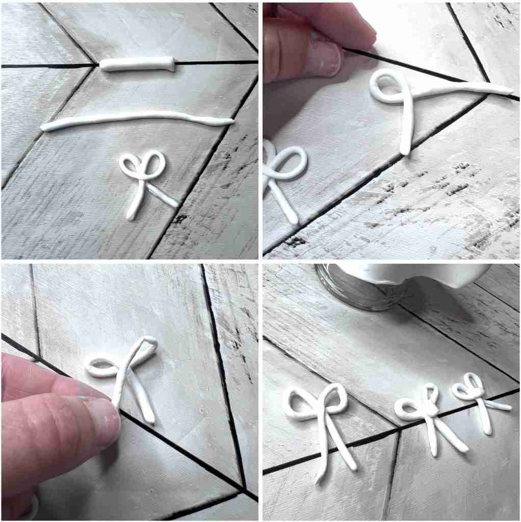 When the paint is dry attach the bow with a small bit of glue.