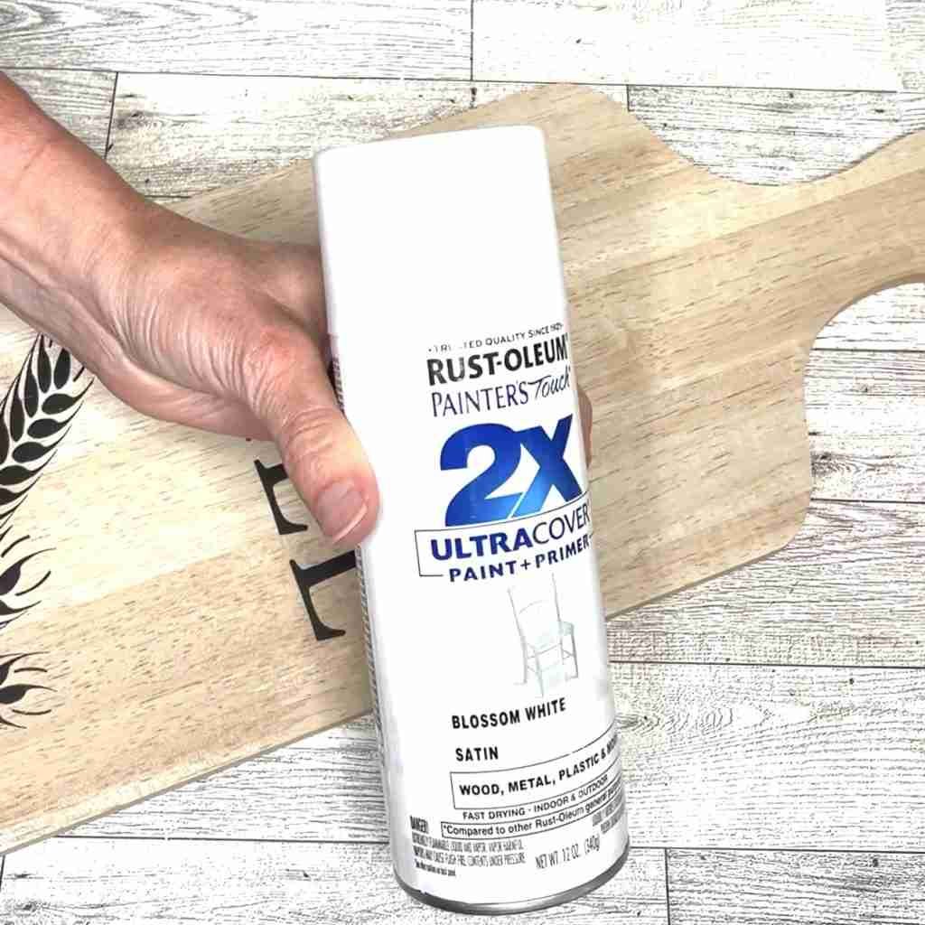 First of all, I’ll paint the cheeseboard with spray paint, but you can also use a thicker paint such as chalk paint as well.