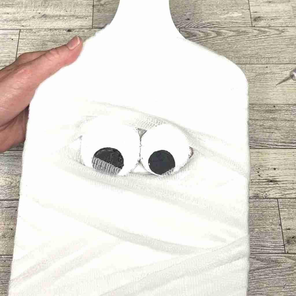 Next, wrap the second box of gauze around the bottom of the board and around the edges of the eyes.