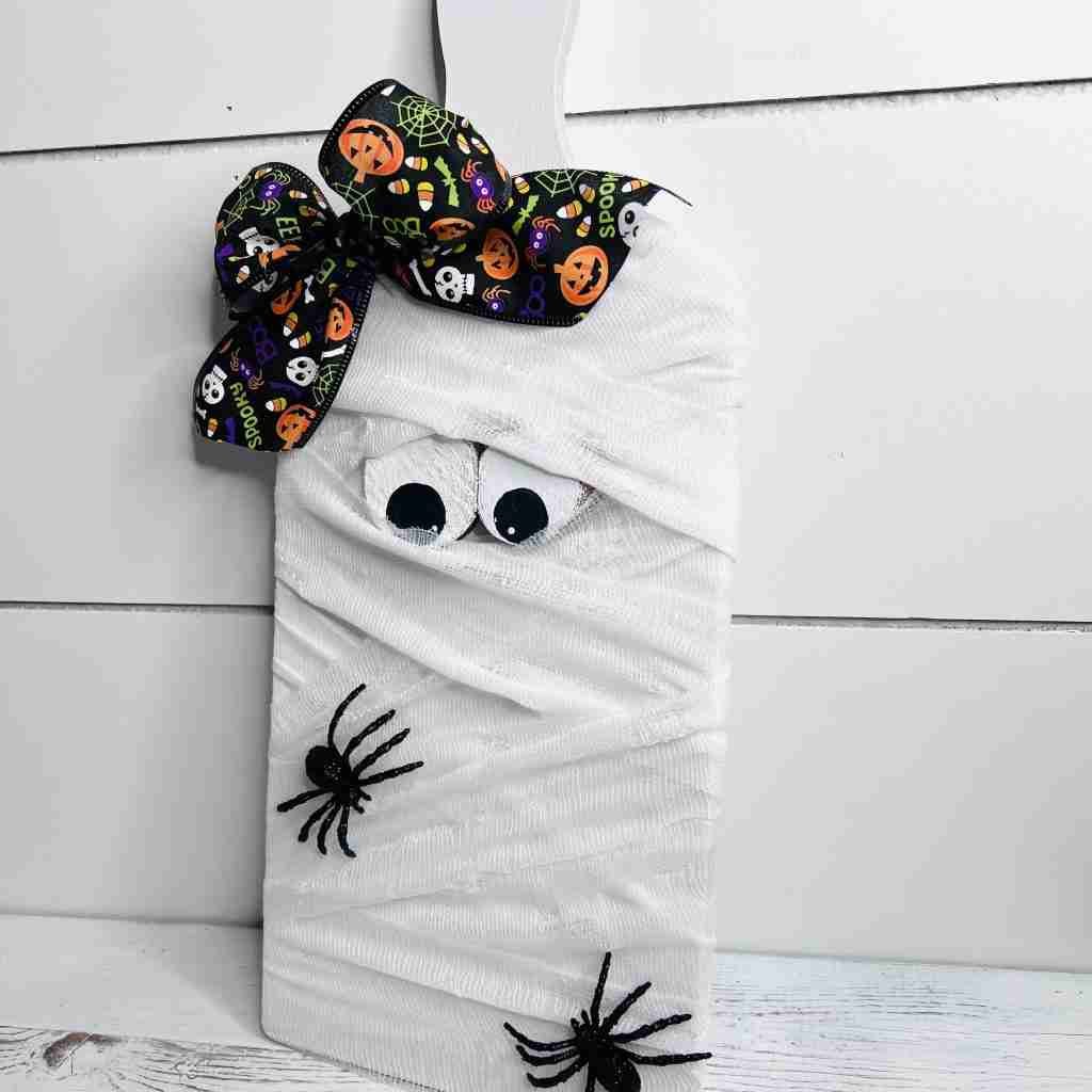 Finally the Dollar Tree mummy is all finished and ready to welcome those Trick or Treaters! This little guy will be so cute on the mantle or tucked on the kitchen counter!! Let me know what you think about this one!!