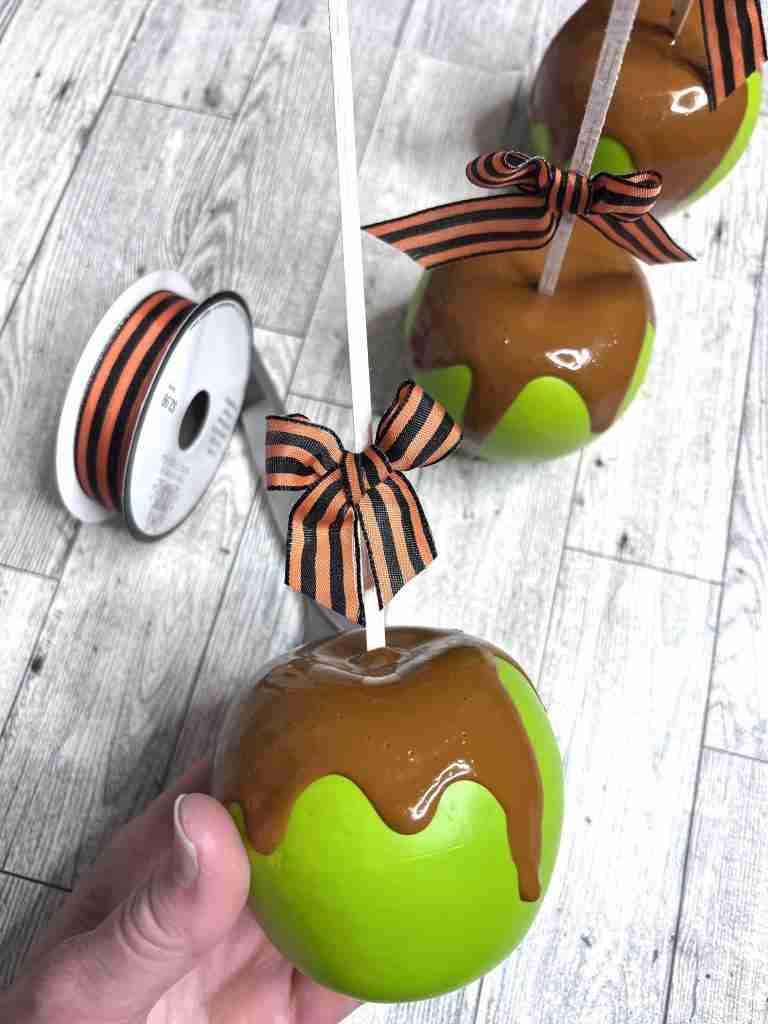 Caramel apples always make me think of fall weather and when I spotted faux bright green apples in Dollar Tree I couldn’t resist!! They are going to be perfect for some easy faux Dollar Tree caramel apples and I can’t wait to show you how easy they are!