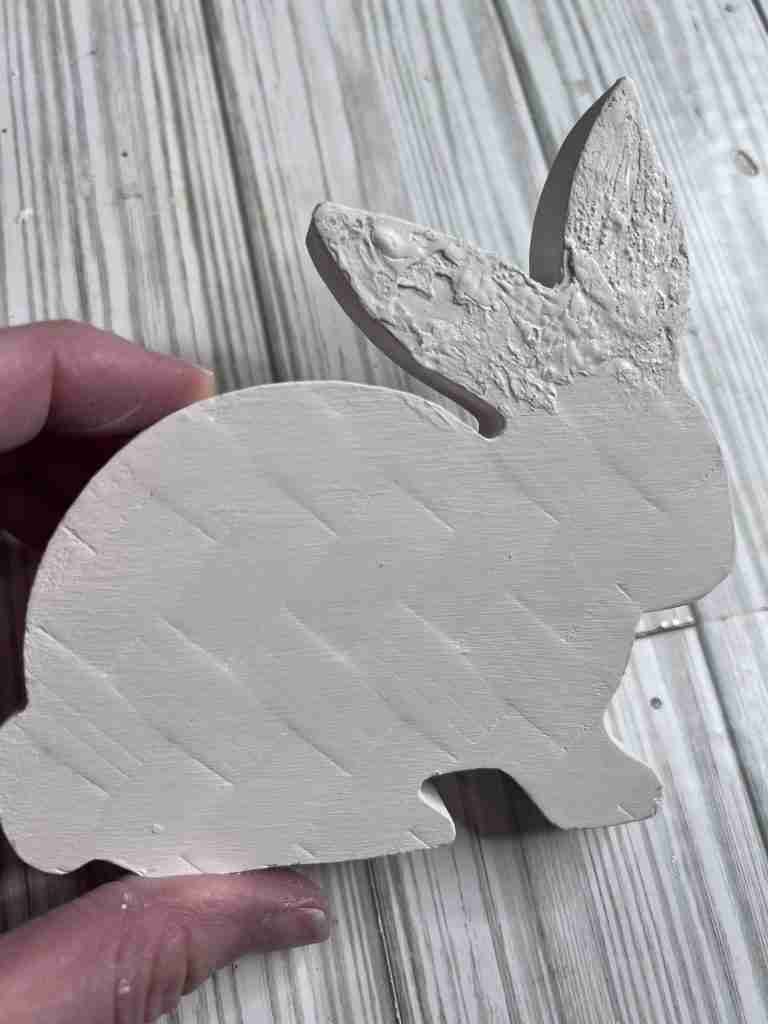 Once the bunny is painted I wanted to give it some more texture so I’ll use some crackle paste on the ears. It didn’t crackle like I expected, BUT I love the texture it gave.
