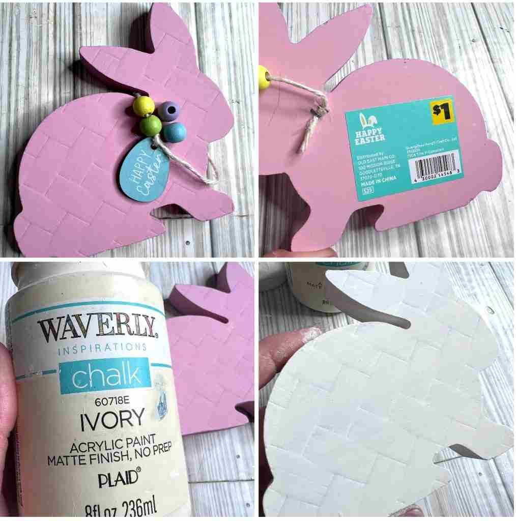 Easy and budget friendly make-overs are a favorite of mine. How about you? I found this wood bunny cut-out at Dollar General for $1.00 and it immediately inspired this easy Dollar General spring bunny make-over!