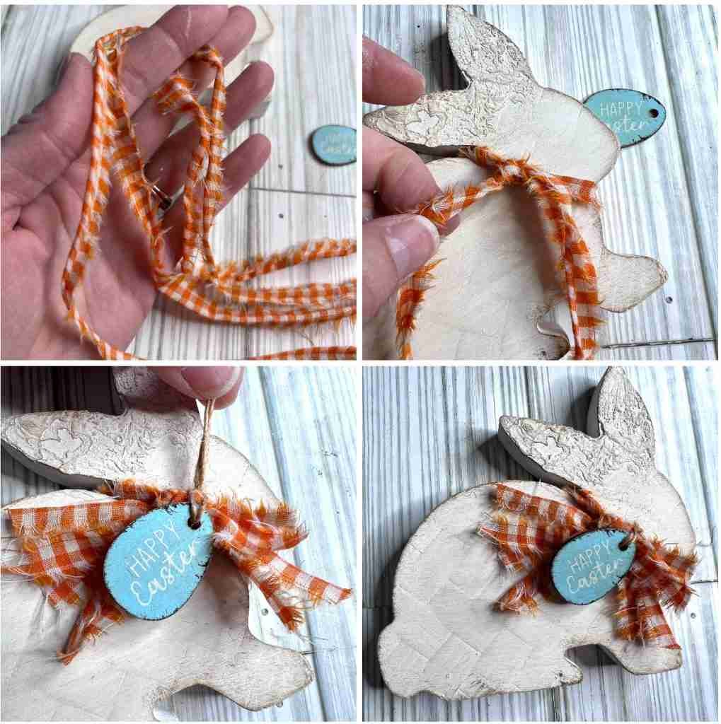 What a difference the wax makes on this little guy! He does need a little color though, so let’s add a bow and reuse that egg that was on him in the beginning.
