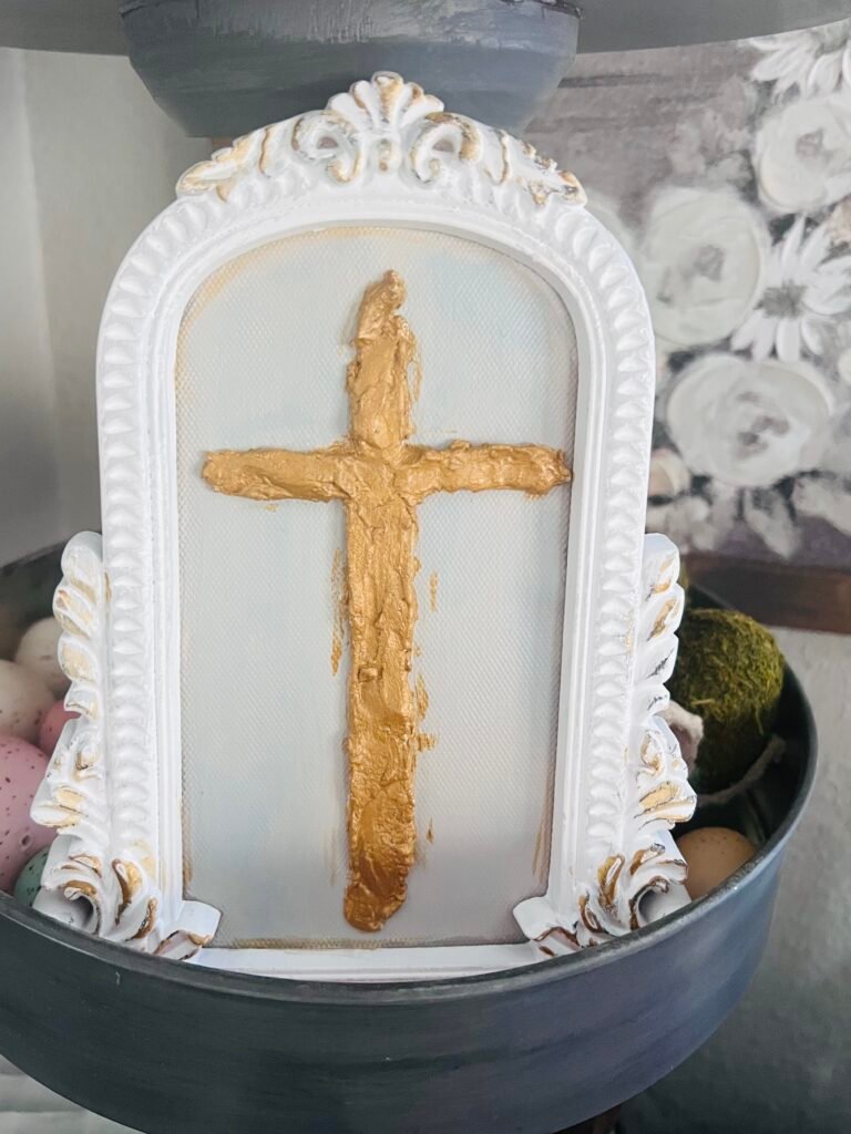 I’m just in love with the gold cross and gold accents on the frame. It really makes this piece pop! I’d love to know what you think of the gold and cross combination. Let me know if you’ll try this one!